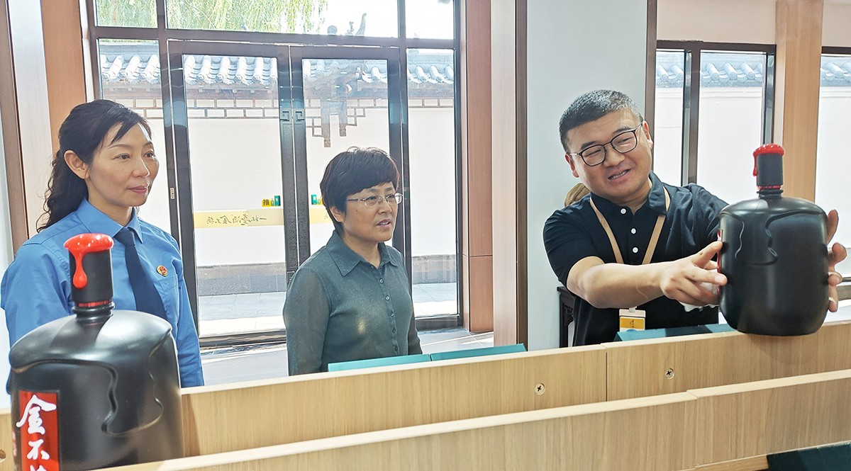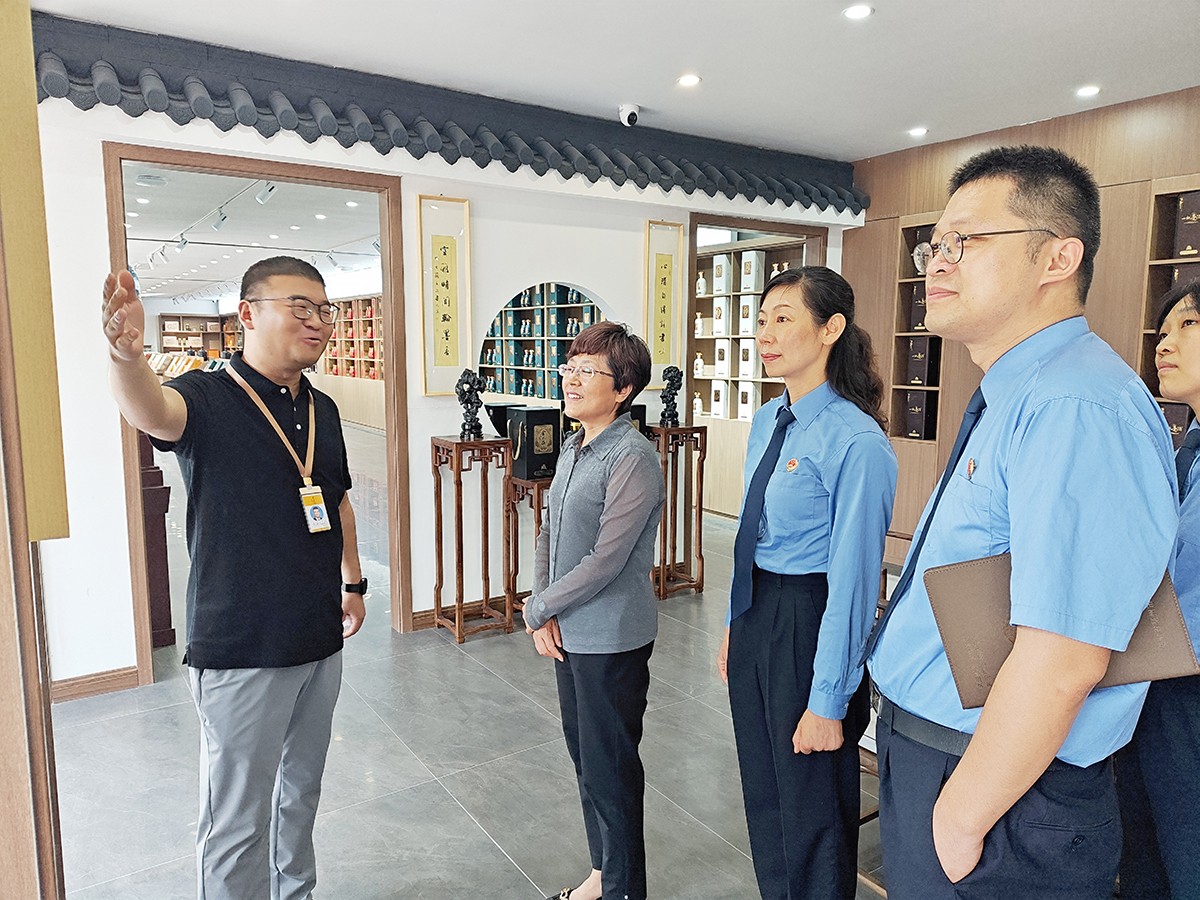 劉繼英一行在金不換集團黨委書記、總裁支濤的陪同下,實地查看了金不換白酒儲藏、銷售、生產(chǎn)、文化展示基地。聽取企業(yè)生產(chǎn)經(jīng)營情況和發(fā)展規(guī)劃介紹。劉繼英檢察長對金不換多年來堅持守法誠信經(jīng)營,創(chuàng)造良好生產(chǎn)經(jīng)營環(huán)境,取得高質(zhì)量發(fā)展給予高度贊揚。